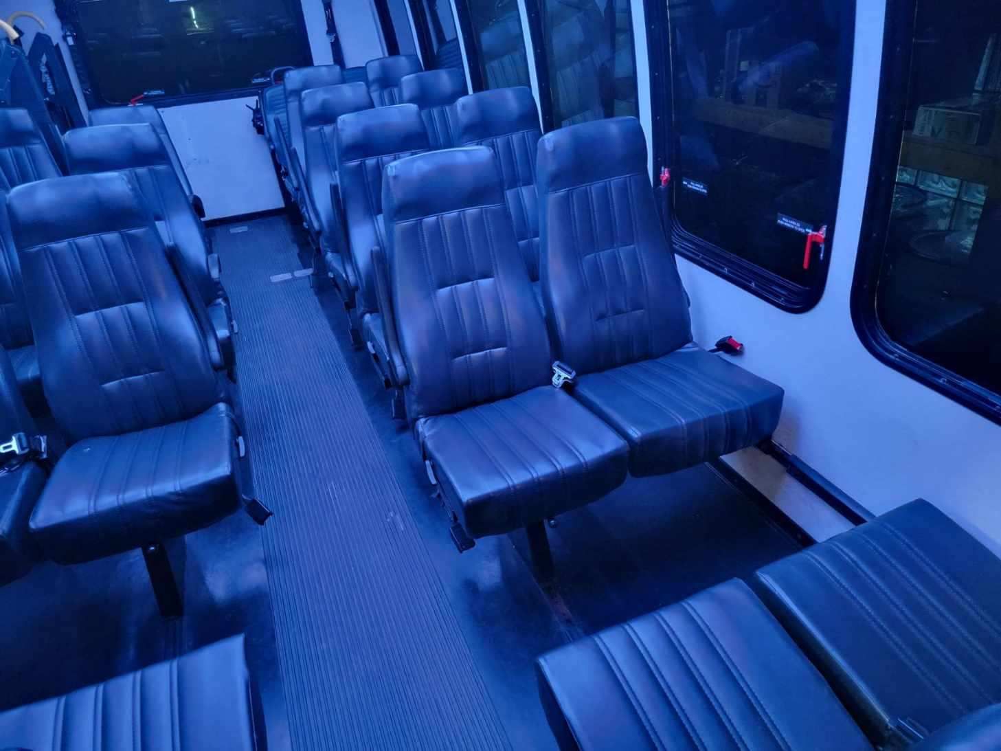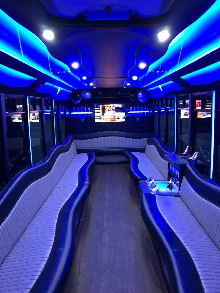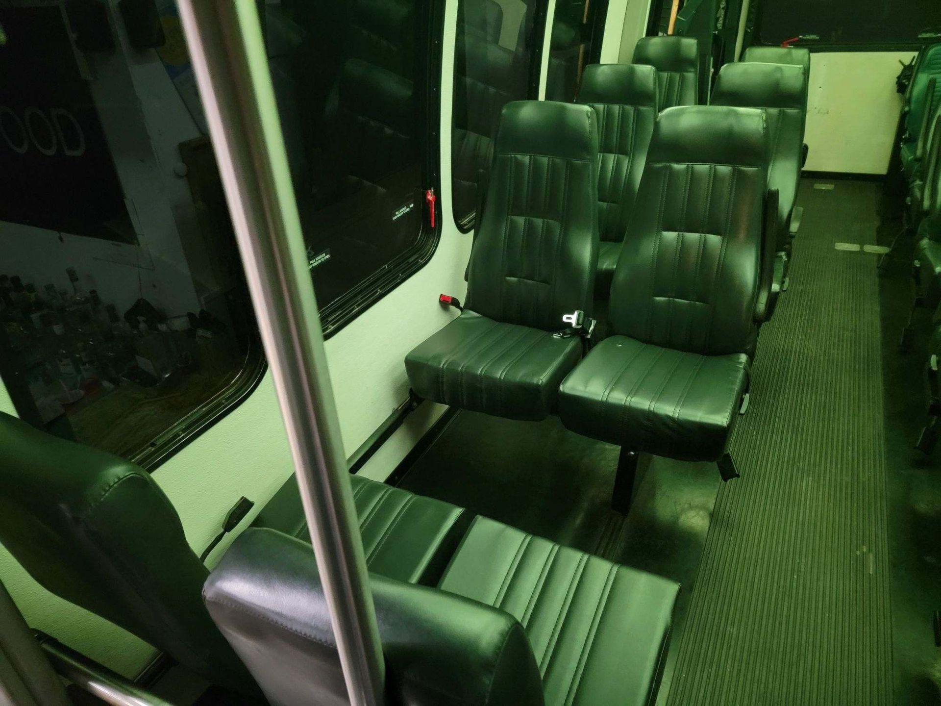 The elegant interior of this fully furnished limo bus will give your guests the best travel experience in Green Bay and Northeast Wisconsin. The interior includes custom leather perimeter seating for ultimate comfort. Adjustable lighting with LED panel ceiling lights, solid and scrolling strobe lights that moves to music. Your group will love the bar with ice storage for all your refreshments.